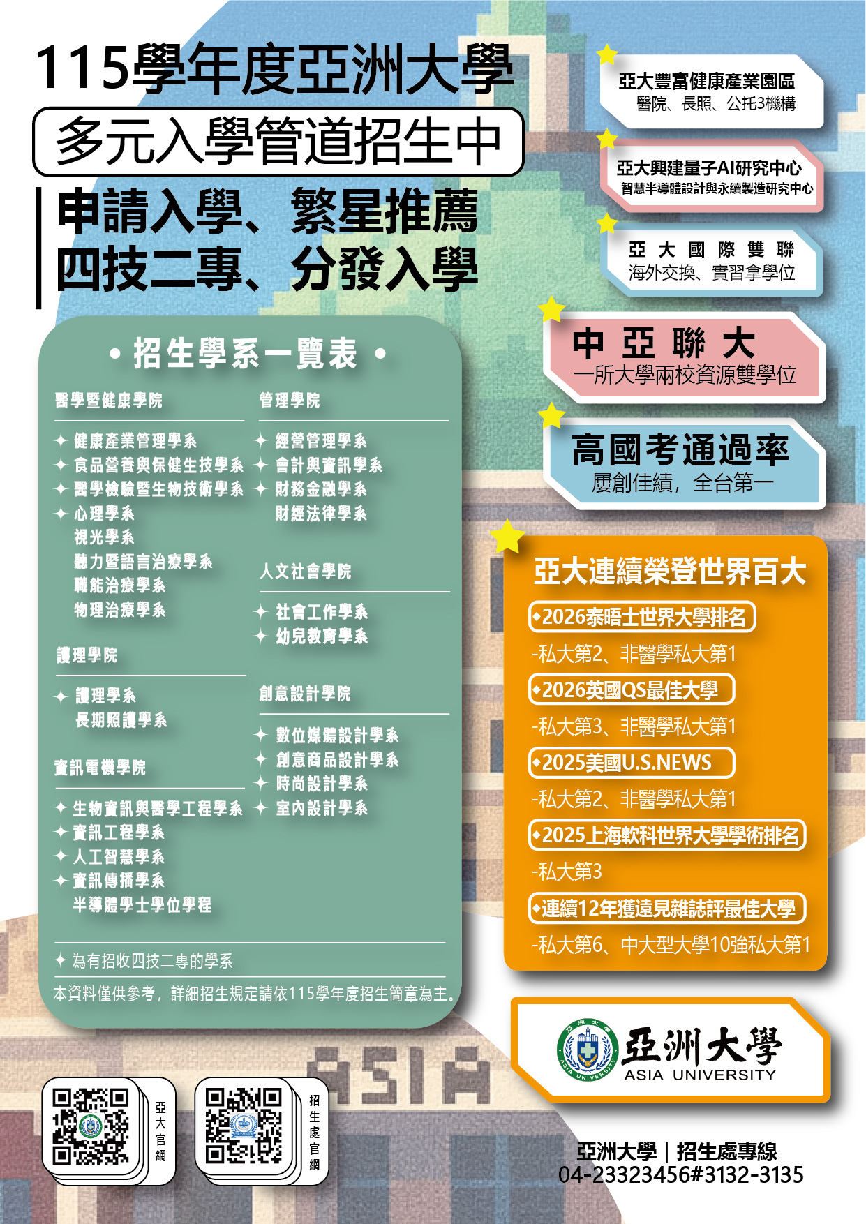 轉知:亞洲大學院系特色成果展會暨多元入學管道說明會