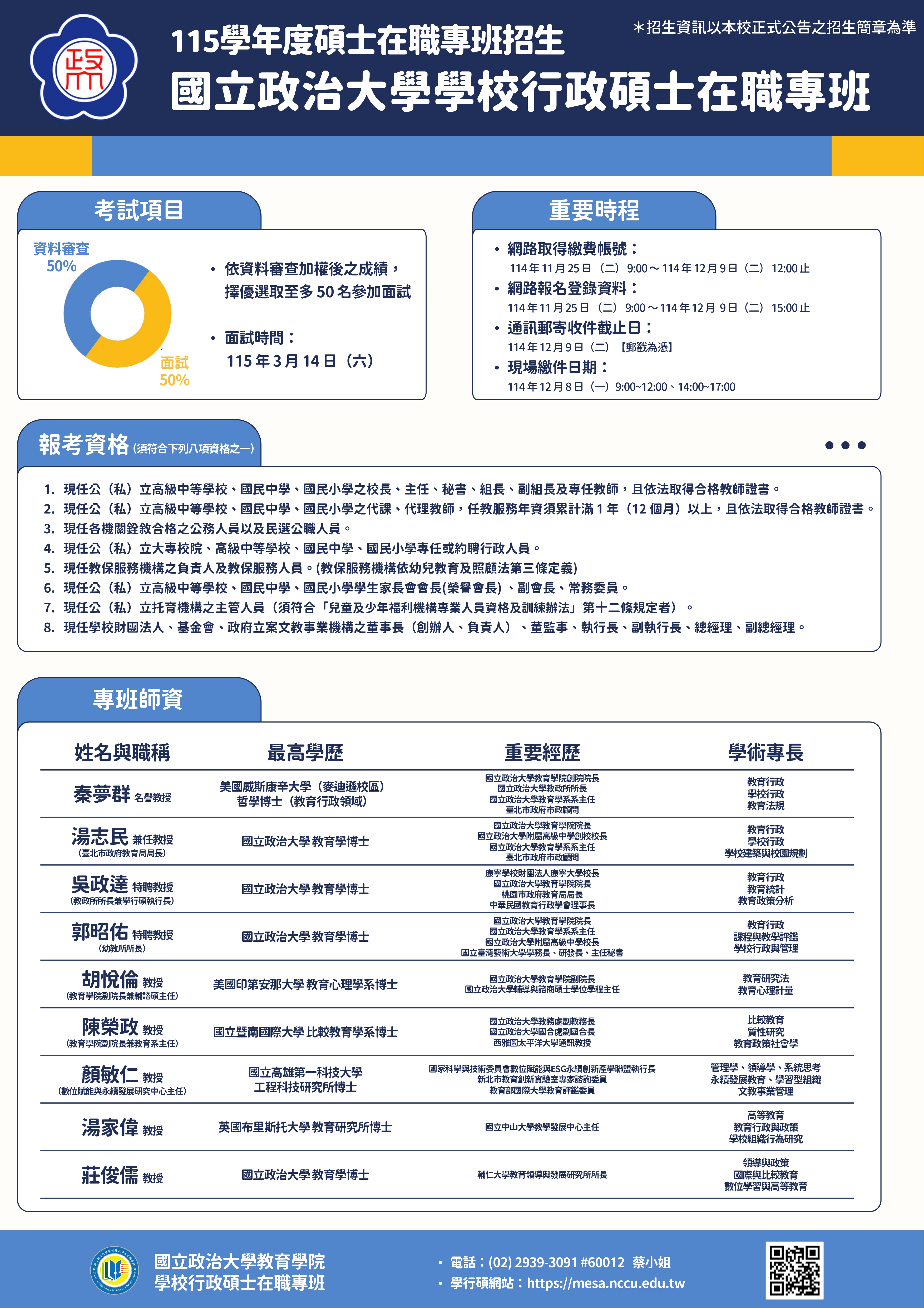 轉知:國立政治大學學校行政碩士在職專班115學年度招生資訊