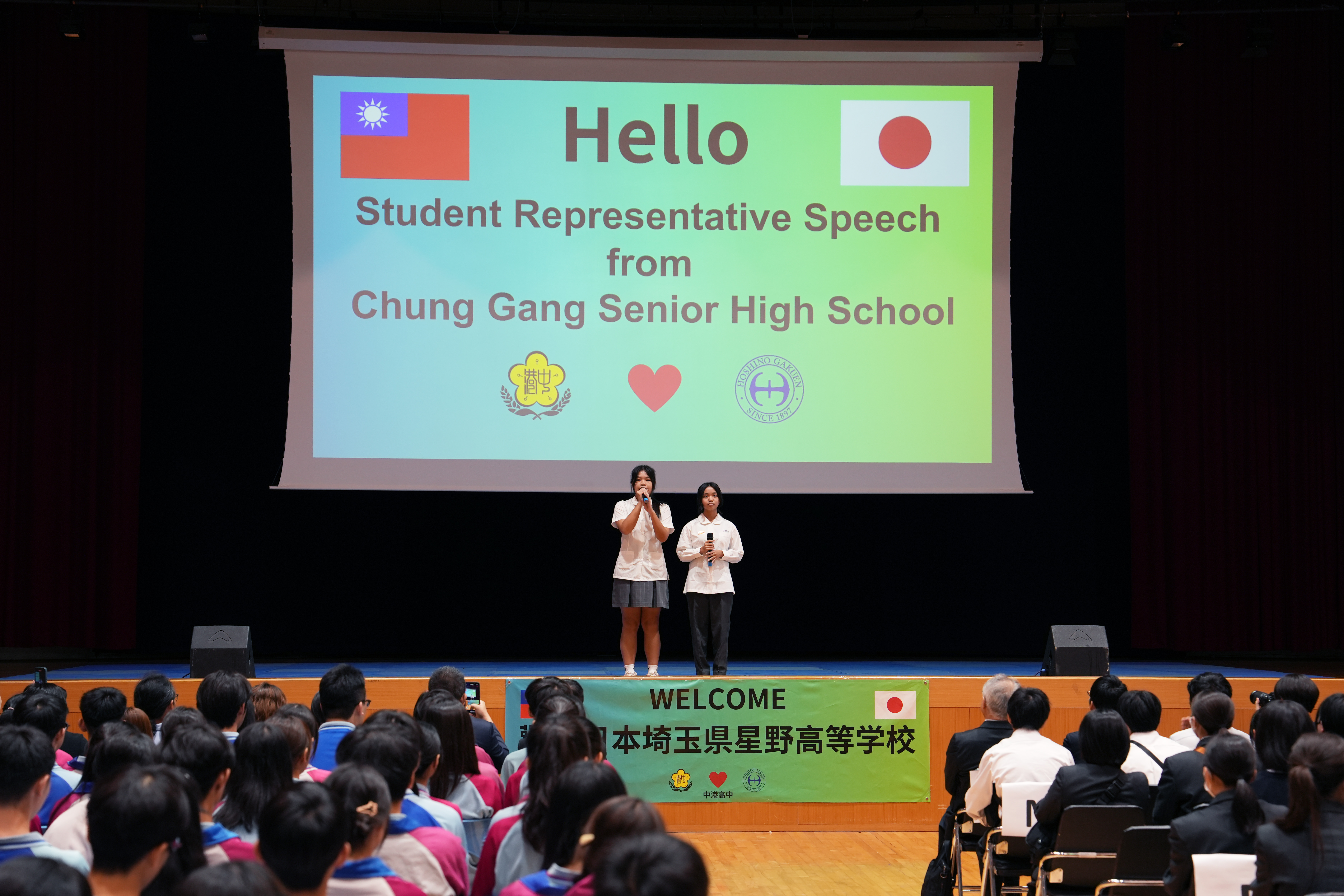 中港學生代表陳靖婷、蔡沛妤日文致詞