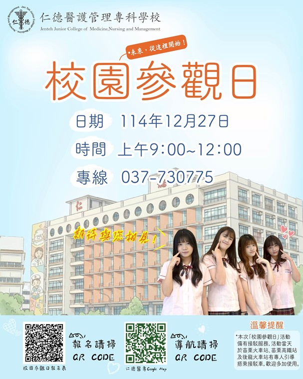 轉知:仁德醫護專科學校115學年度完全免試入學或聯合免試入學管道