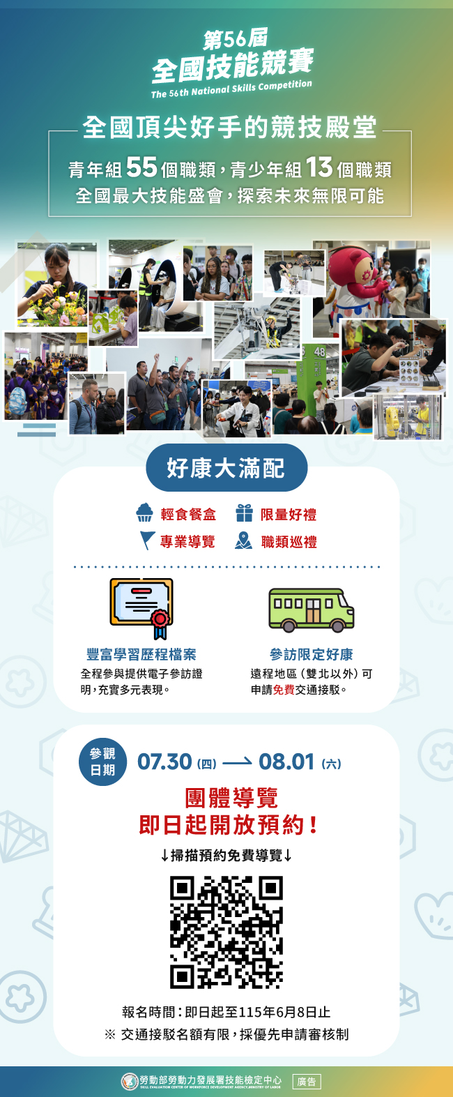 轉知:勞動部勞動力發展署(下稱勞發署)115年度「第56屆全國技能競賽」